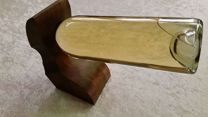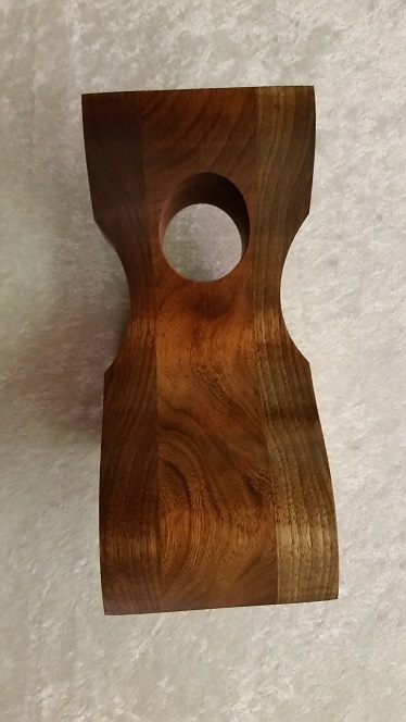 This beautiful inverted wine bottle holder was built with a cherry wood in the center and walnut wood accenting both sides. The color on this piece is called provincial, and this item was finished with a semi gloss lacquer. Our inverted wine bottle holders all come with their own set of care instructions, to bring years of functionality and charm to any home bar or kitchen.Accessories