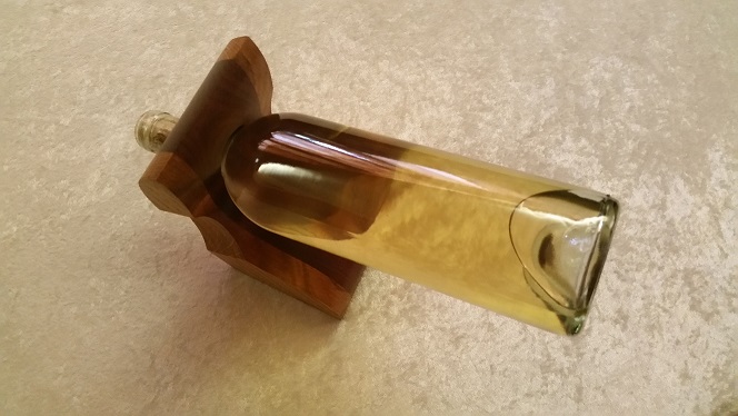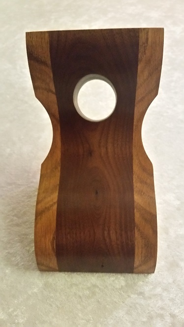 This inverted wine bottle holder was constructed using a walnut wood for the center and quartersawn white oak wood on both sides. This piece was stained in a light Provincial color and finished with a semi-gloss lacquer. This is an excellent conversation piece for any kitchen or home bar. As with all of our products care instructions are included with your purchase.Accessories