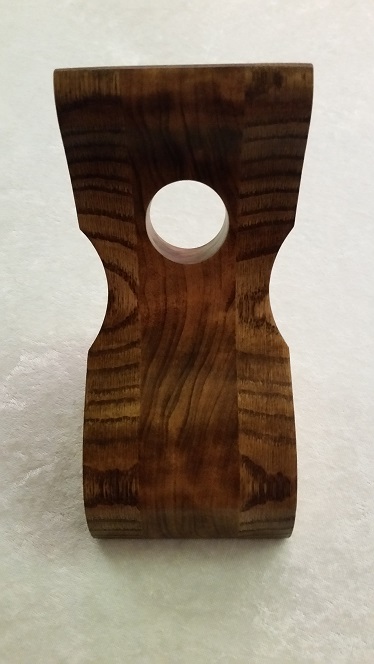 This inverted wine bottle holder is constructed with a solid cherry wood center and white oak quarter sawn wood on the right and left sides. This piece was stained with a provincial color and finished with a semi-gloss lacquer. As with all of our inverted wine bottle holders, this piece will remain standing with or without a wine bottle in it. A set of care instructions is included with your purchase.Accessories