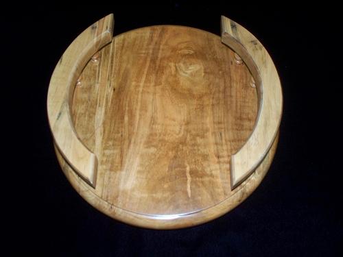 This 12" round lazy susan is constructed from soft spalted wormy striped maple wood. This product is stained with an antique light oak and finished with a pre-catalyzed semi-gloss laquer. The lazy susan has 5 spindles and a rail on each side, leaving to open ends for ease of use. This piece sits on a 500 pound steel ball bearing swivel. Our products come with their own set of care instructions and a lifetime guarantee to ensure many years of beauty and functionality to your home decor.Accessories